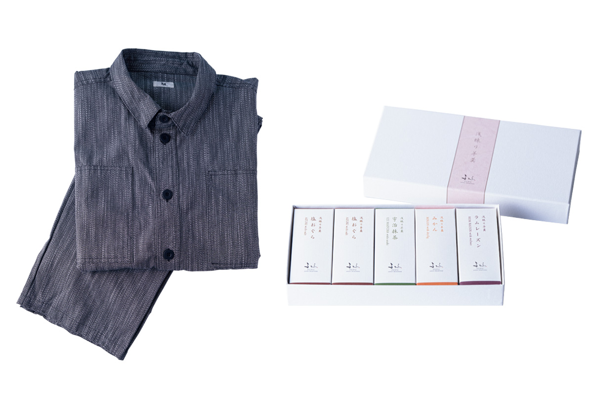 左)襟付きタイプのゆったりとした着心地の館内着。羽織も用意。レストランへも