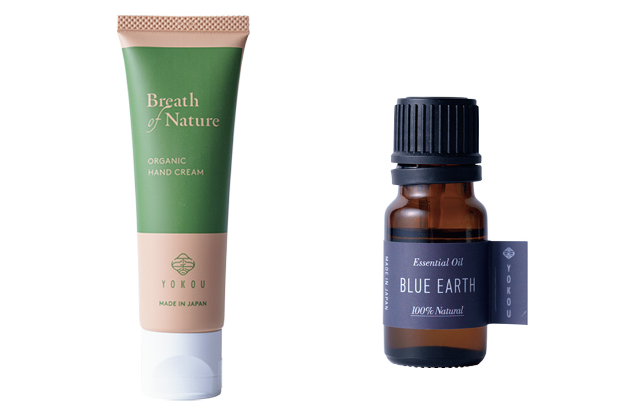 左)オリジナルのオーガニックハンドクリーム「Breath of Nature」は保湿力抜群