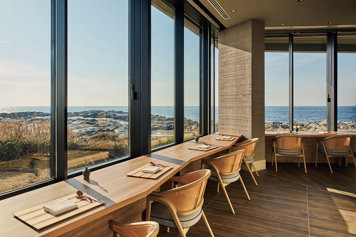「ふふ」が海辺に登場したという話を聞けば、食に期待をしない人などいないだろう。相模湾の新鮮な魚介や全国から厳選した食材を、料理長とともに精鋭たちが繊細に仕立てるオリジナルの日本料理だ。しかも相模湾といえば、富山湾、駿河湾とともに日本3大深湾のひとつ。日本全体の約4割(約1600)もの魚種を数える豊かな海という。