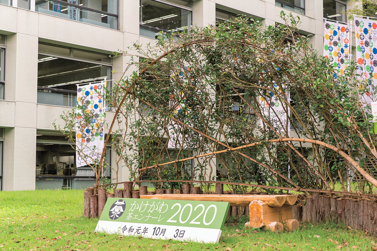 湯澤 「かけがわ茶エンナーレ」は、お茶とアートを融合させて文化振興を行う地域芸術祭で、2017年に30日間にわたって市内の各地をお茶のアート作品で演出しました。その一環で、2019年4月からグリーンディスプレイさんから寄贈いただいたオチャノキアートで市役所前を演出したり、令和になった5月1日に、婚姻届けを出した方にお茶の花言葉「純愛」にあやかって願い事を書いて飾っていただく等、さまざまなイベントでご一緒しています。