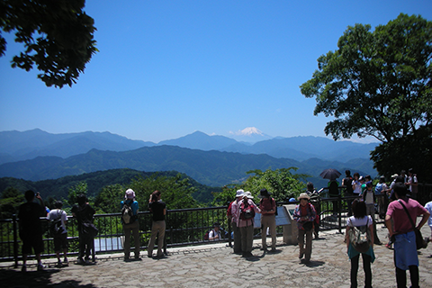 高尾山口駅に到着したら、まずはそば屋やみやげ物店が立ち並ぶ表参道を通り、ケーブルカーやリフトが利用できる駅へ。緑の中を楽々移動したあと、中腹にある駅から頂上までは、景色を楽しみながら約40 分のハイキングです。晴れた日なら美しい富士山の姿が目に入るほか、東京タワーや東京スカイツリーなど、都心の街並みやランドマークも発見してみて。標高599mの山頂展望台では、高尾山を囲む山並みや奥多摩の雄大な景色、東京郊外の街並みがパノラマで広がる絶景に出合えます。