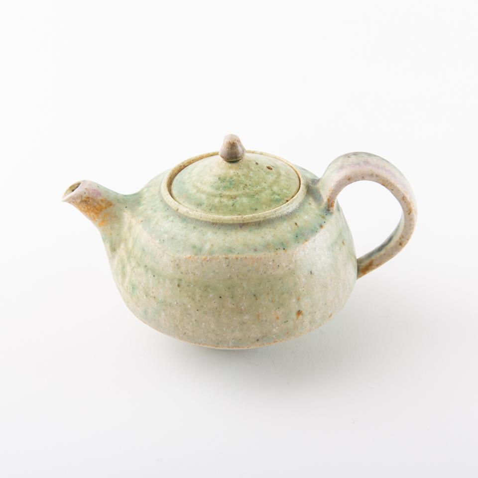 境さんのトレードマークである織部釉と黒が絵画のように現れているアート性の高い作品。ポットとしての使い心地に優れている点も魅力