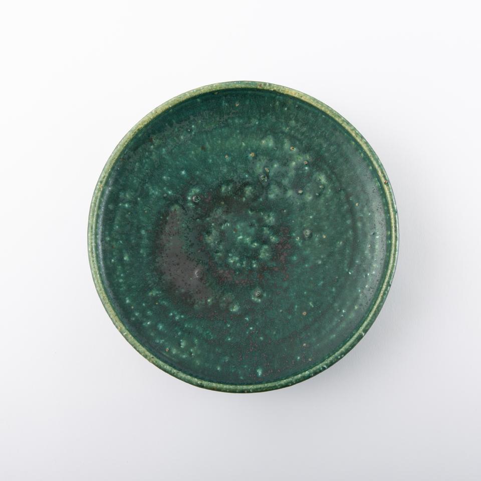 織部釉の緑と黒が混ざり合って、絵画のような世界をつくり出す境道一さんのうつわ。深みのあるその表情に、心を揺さぶられる人は後を絶たない。
