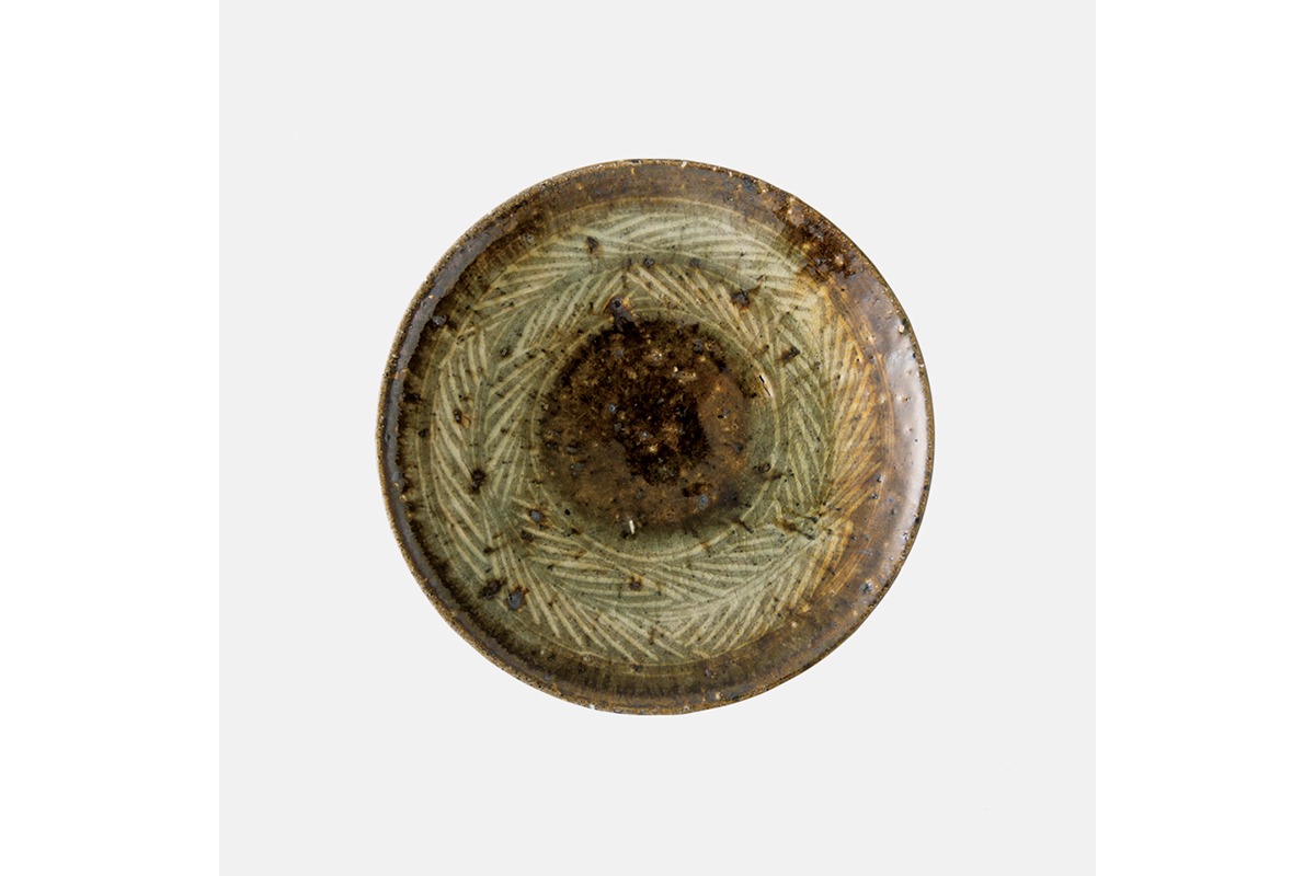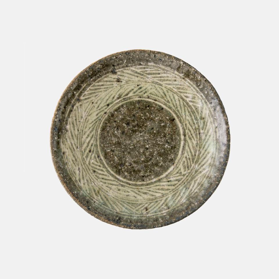 縄目のような紋様が特徴的な三島手のうつわ。うつわの表面を彫り、彫った部分に白土を嵌めこんで模様をつける「象嵌(ぞうがん)」という技法が用いられています。土を埋め込むことで模様に奥行きとメリハリが生まれ、染付のうつわなどとはまた違った表情に仕上がります。個性的な紋様からは、時間や空間を超えた “つくり手の気配” が感じられます。手作業ならではの素朴な温かさで、心まで満たされる一枚です。