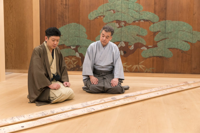 それでもあえて新調するのは、「舞台への覚悟、そして伝統をつなぐという使命感」からである。よい装束を未来に残すこと。そのためにも職人とのコミュニケーションは欠かせない。佐野さんが工房まで足を運ぶのも、その一環だ。「伝統って、一見同じに見えても、少しずつ変わっていくもの。でも、何でもいじっていいわけではない。どこを変えて、どこを残すか?そういう議論を、実際に使う演者と、工程を熟知した職人との間で交わすことが大事です」(佐野)