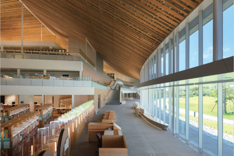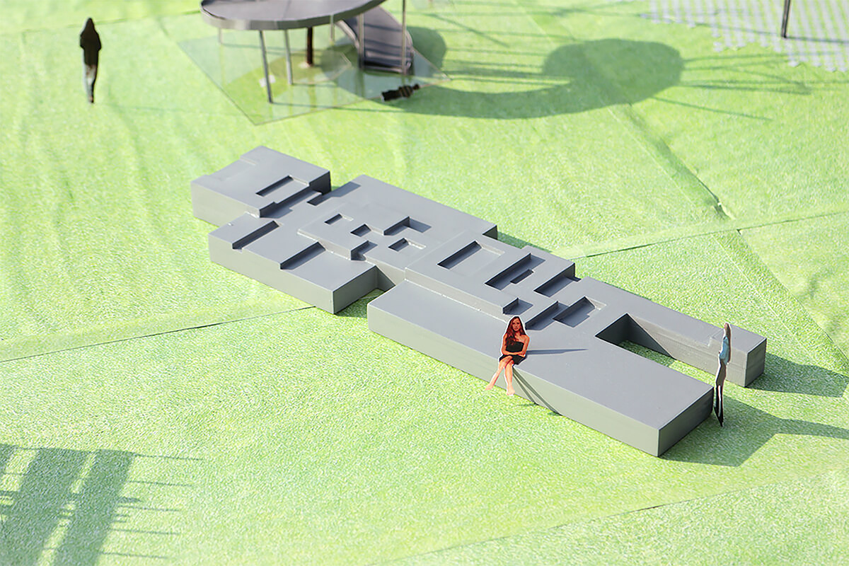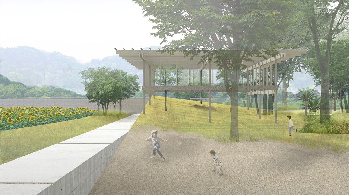 公園は、DDAA/DDAA LABの元木大輔氏がデザイン。公園の真ん中に立つと、高低を描く稜線や幾何学的なラインが見え、遠くからでも公園のランドスケープを認識できるような大きな線を風景の中に引くデザインがされている。