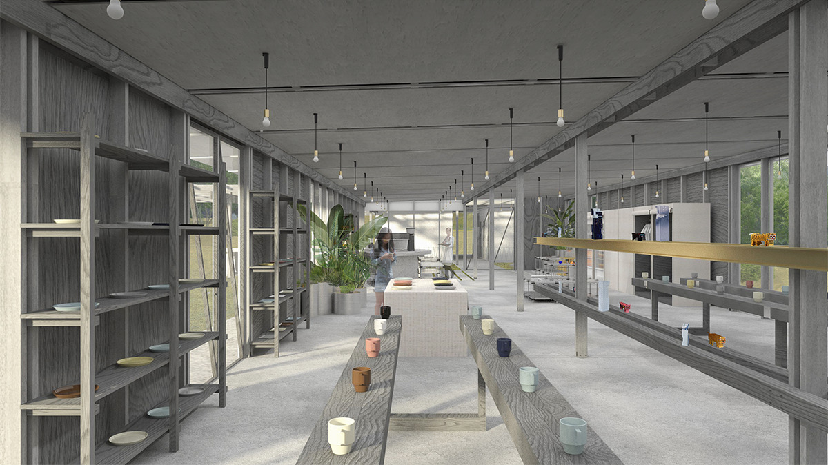 野本設計の野本哲平氏がデザイン。端正なスレート張りの倉庫は日本の風景を飾る伝統建築にもなりうる、「ものを生産する町のアイコン」としてここ波佐見町に在り続ける。9月19日(日)から、KOUBAにてシークレットガレージセールを開催予定。